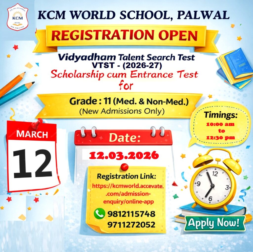 VTST Registration 2026 I still remember the days in the year 2001, when we had first thought of venturing into education. As this was a totally new field for us, the only way to learn was to become students once again. And after studying and contemplating various education systems both in India and abroad, emerged an education model to which we gave a name - "KCM - a pathway to success".